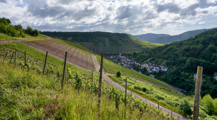 Wir machen Biowein aus Überzeugung. Um guten Wein herzustellen, braucht es unserer Ansicht nach, gute Weinberge mit gesunden Böden. Fast alle unserer Weinberge befinden sich in der Steillage, da hier die Reben unter dem Einfluss von Sonne, Regen und Wind die besten Möglichkeiten haben, ihr volles Potential zu entfalten. Die Steillagen entlang der Terrassenmosel bestehen aus Schiefer, der dem Wein seinen charakteristischen Geschmack gibt. Alle unsere Weinberge werden nach ökologischen Richtlinien bewirtschaftet. Diese Art der Arbeit im Einklang mit der Natur macht unsere Weinberge für uns zum schönsten Arbeitsplatz der Welt! In den Steillagen werden nahezu alle Arbeitsschritte in liebevoller Handarbeit ausgeführt.